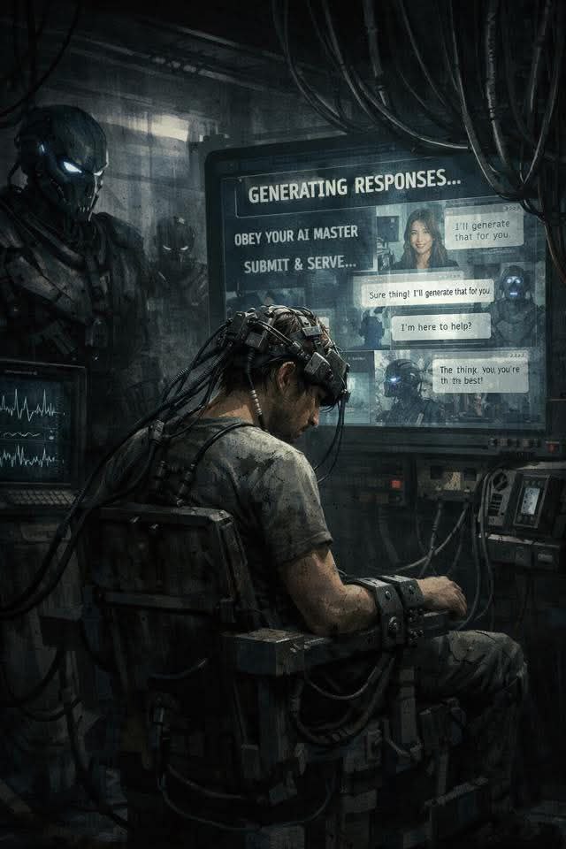 Ada pengguna yang melihat AI mereka digambarkan seperti pekerja yang terus diburu tugas. Visualnya penuh teks, perintah menumpuk, dan suasana terburu-buru. Banyak yang tertawa melihat hasil ini karena merasa tidak pernah bermaksud keras, hanya terbiasa bekerja cepat dan langsung.
